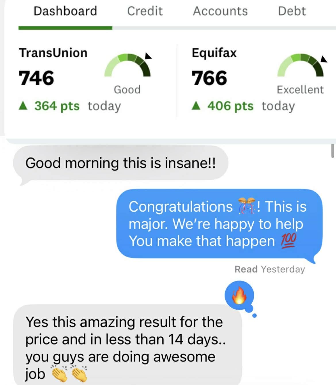"Imagine checking your credit and finally seeing the score you deserve-no more worrying about home, car, and funding approvals or being turned down for opportunitities. That's the freedom we deliver to you."